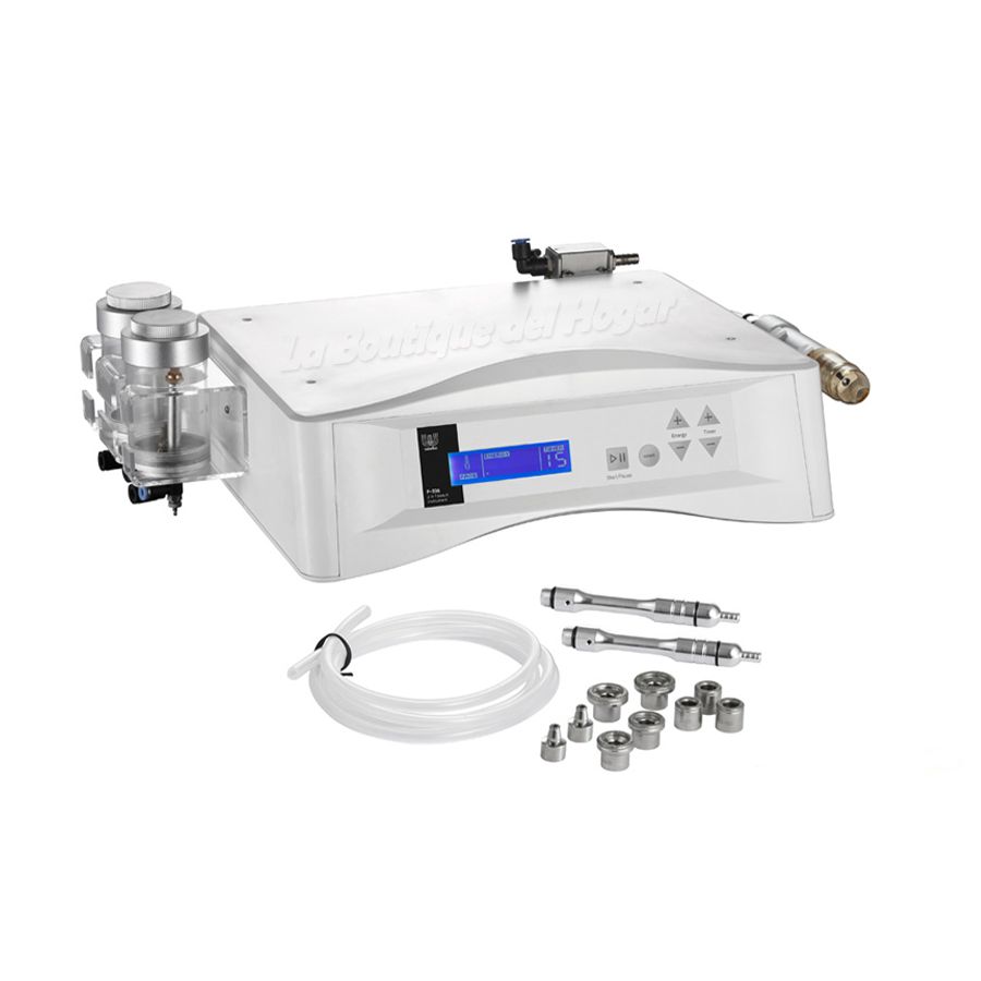 Moderno y compacto equipo de microdermoabrasión 2 en 1 que combina dos técnicas: mediante puntas de diamante y con microcristales de óxido de aluminio ideado para realizar tratamientos de exfoliacion controlada, precisa y progresiva, y para mejorar la calidad de la piel, reducir manchas, suavizar las líneas de expresión y tratar las cicatrices.