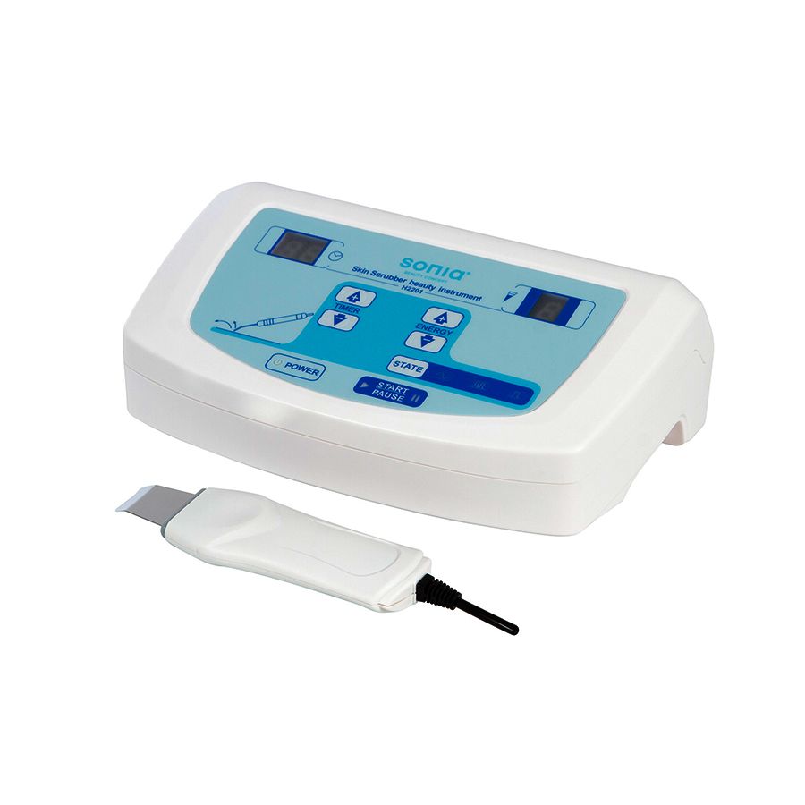 Moderno y compacto equipo de exfoliacion facial profesional / Peeling ultrasónico Modelo Maia Exfo, un aparato especialmente indicado para limpiezas profundas de cutis, exfoliaciones y demás, que ha sido diseñado para eliminar las primeras capas de la piel afectadas con imperfecciones, logrando así una completa regeneración de la misma. El resultado de tratamiento es una piel nueva, suave y limpia, ayudando al mismo tiempo a mejorar la circulación sanguínea y a prevenir el envejecimiento cutáneo.
