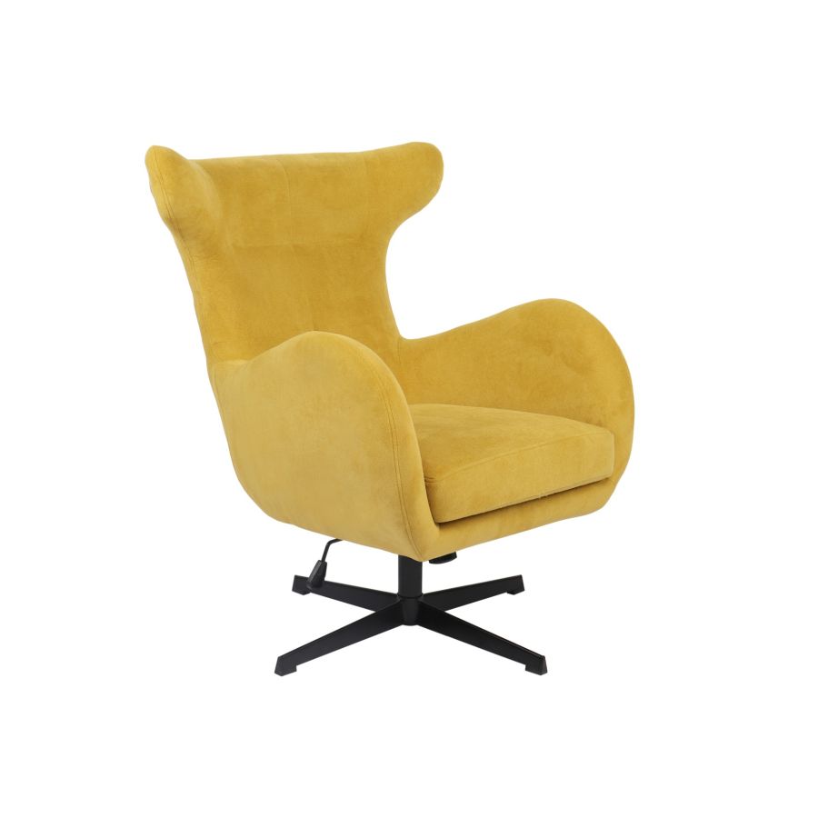El tejido mostaza es resistente y fácil de mantener, aportando un aire fresco y acogedor al salón o despacho. Su base metálica de 4 patas ofrece estabilidad y robustez, reforzando su diseño contemporáneo y elegante.