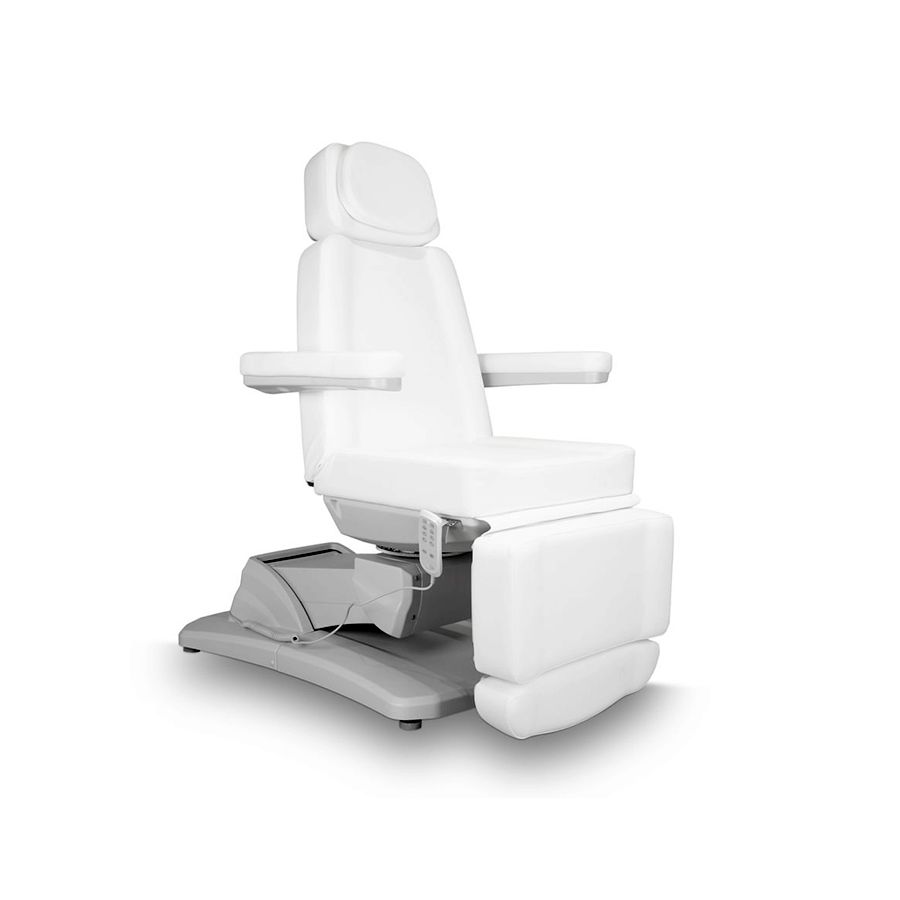 Esta camilla eléctrica de alta gama dispone de una estructura muy estable y es altamente configurable, ya que ha sido diseñada especialmente para optimizar el espacio de trabajo gracias a la rotación del sillón de 120°. La camilla está dividida en varias secciones, controlables mediante 4 motores, y otorga un gran confort gracias a que sus 4 motores son capaces de controlar todos los movimientos de la camilla, como son la altura, la inclinación del respaldo y del asiento, e incluso la del reposapiés.