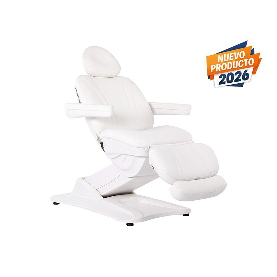 Esta camilla eléctrica es altamente configurable y ha sido diseñada especialmente para optimizar el espacio de trabajo gracias a su gran capacidad de regulación eléctrica. La camilla está dividida en 3 secciones y ha sido diseñada para ofrecer precisión, rapidez y ergonomía de uso, permite la regulación eléctrica de altura, respaldo, reposapiés e inclinación, incorporando la función Antigravity para brindar mayor comodidad en tratamientos largos. Su estructura presenta un colchón de 3 secciones con extensible en cabeza y pies, además de un reposacabezas regulable en ángulo que se adapta con exactitud al paciente para un confort óptimo. Incorpora brazos abatibles, extraíbles y sincronizados con el asiento. El manejo del sillón se realiza de forma intuitiva mediante mando de mano y botoneras laterales, destacando sus 2 memorias de posición que permiten preconfigurar las posturas de trabajo más habituales con un solo clic, además de contar con función reset además de incluir botonera de pie integrada en la base a ambos lados para facilitar el ajuste con manos libres.