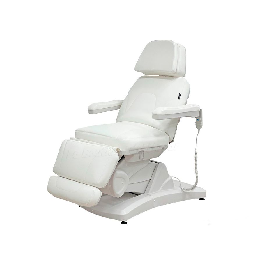 Esta camilla eléctrica es altamente configurable y ha sido diseñada especialmente para optimizar el espacio de trabajo gracias a su gran capacidad de regulación eléctrica. La camilla está dividida en 3 secciones, controlables mediante 4 motores que se regulan a través de un mando cableado, de manera que dispone de un gran confort gracias a que 3 de sus motores son capaces de controlar todos los movimientos como son la altura, la inclinación del respaldo y la inclinación del asiento. Además, dispone de un cuarto motor que permite la regulación motorizada del reposapiés, en lugar de ser regulado mediante pistón de gas como ocurre en otros modelos de 3 motores. Esta camilla también dispone de una robusta y estable, así como unos reposabrazos abatibles y reposacabezas con agujero facial, ha sido diseñada con unos acabados de máxima calidad y cuenta también con tapizado en PU de gran calidad y fácil limpieza, así como un acolchado de alta densidad que le otorga una gran comodidad de uso.