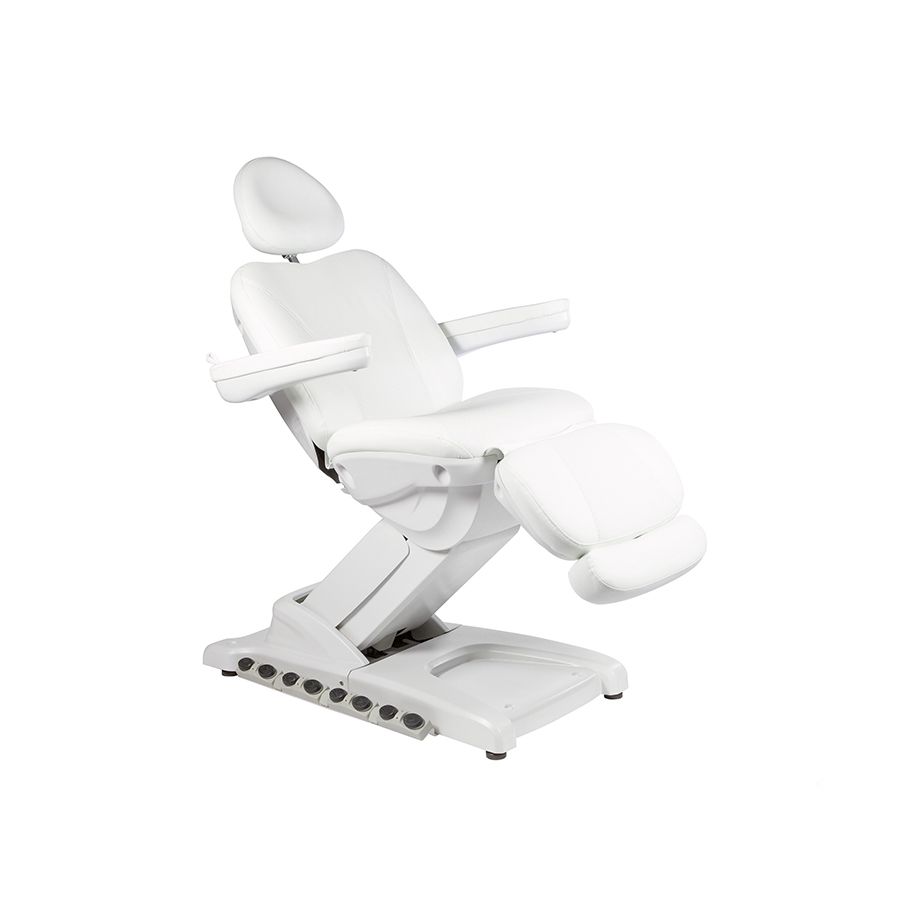 Esta camilla eléctrica es altamente configurable y ha sido diseñada especialmente para optimizar el espacio de trabajo gracias a su gran capacidad de regulación eléctrica. La camilla está dividida en 3 secciones, controlables mediante 4 motores, que son capaces de controlar todos los movimientos como son la altura, la inclinación del respaldo y del reposapies. Sus funciones motorizadas son las siguientes: