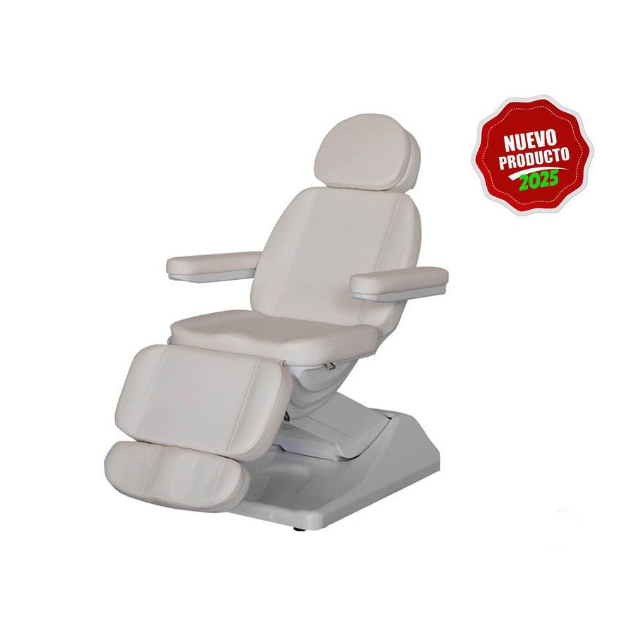 La camilla eléctrica está dividida en 3 secciones y dispone de un gran confort gracias a que sus 4 motores controlan la inclinación del respaldo, asiento y reposapiés, adaptándose a una amplia variedad de tratamientos. Además, dispone de un reposapiés regulable de manera automática gracias a su cuarto motor, así como reposabrazos abatibles y reposacabezas ajustable con agujero facial. La Camilla ha sido diseñada con unos acabados de máxima calidad y cuenta también con tapizado blanco en PU de gran calidad y fácil limpieza así como un acolchado de alta densidad. Esta camilla también está disponible con calefacción (Consultar).