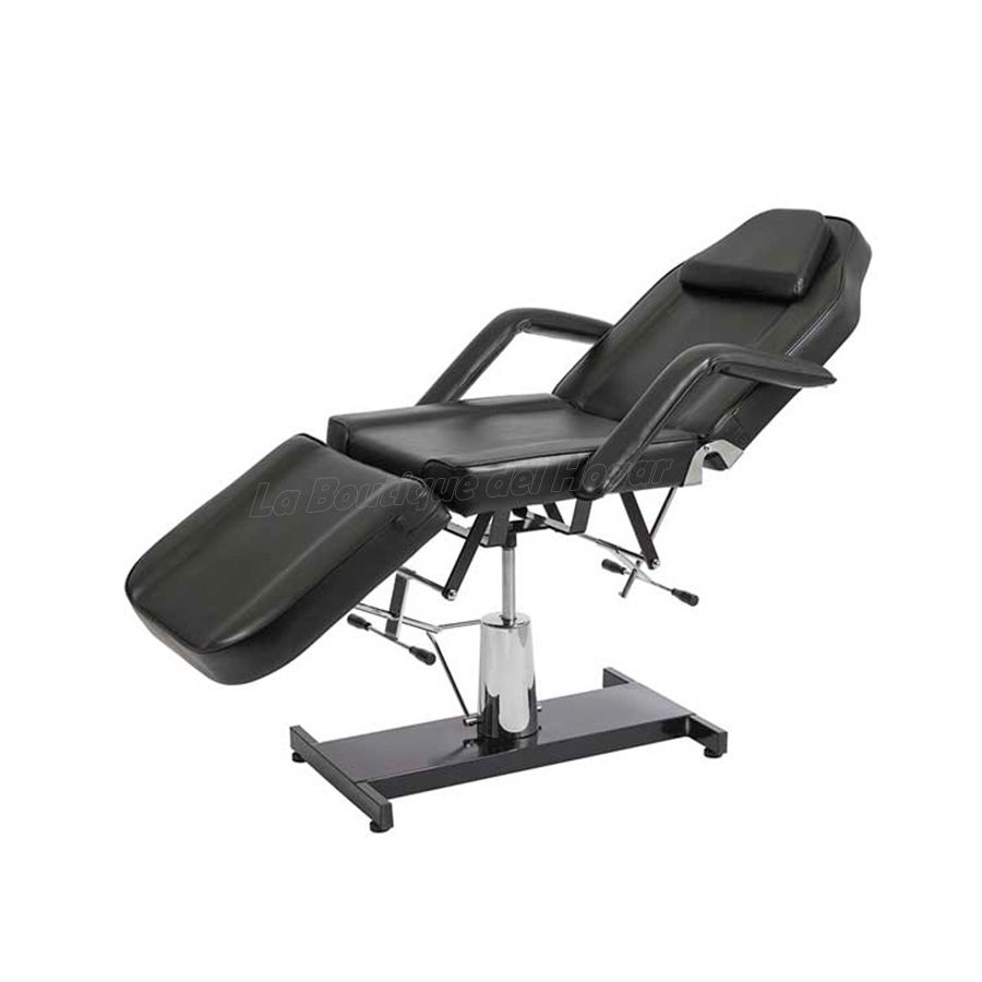 La Boutique del Hogar pone ahora a su disposición esta fantástica camilla de 3 cuerpos cuya funcionalidad, facilidad de uso y acabados de gran calidad, la convierten en una de las camillas hidráulicas con mejor relación calidad-precio disponibles actualmente en el mercado. Se trata de una robusta camilla funcional de tres cuerpos regulable en altura mediante bomba hidráulica, que dispone de una estructura metálica con base metálica pintada en negro. La camilla dispone además, de un elegante tapizado en PVC en color negro, muy fácil de limpiar.