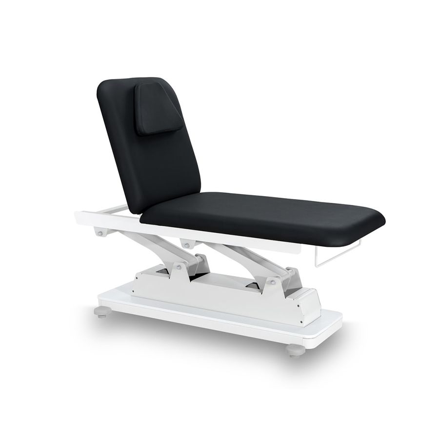 La camilla de masaje eléctrica está dividida en 2 secciones y es regulable en altura, para lo que dispone de 1 Motor de elevación que controla la altura de la camilla. Además, el ángulo del respaldo el respaldo ajustable por medio de un pistón de gas. Por otra parte, la camilla dispone de una robusta estructura metálica con dos ruedas que facilitan su desplazamiento y ha sido diseñada con unos acabados de máxima calidad, un tapizado en PU color negro y un acolchado de alta densidad.