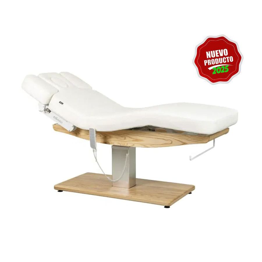 La Camilla de SPA Modelo Condra Smart con calefacción integrada, incorpora de 3 motores que regulan motores que regulan la altura y la inclinación del respaldo y del reposapiés con máxima suavidad y silencio. Además, cuenta con reposabrazos ajustables y cabezal con agujero facial. Su base dispone de una robusta estructura de madera maciza natural, cálida y acogedora.