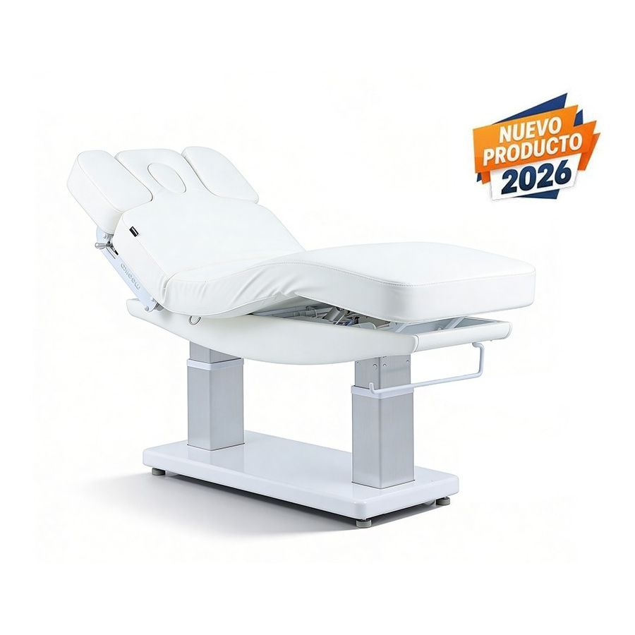 La Camilla SPA Tensor Plus es una camilla de altas prestaciones que consta de 4 motores que regulan la altura, la inclinación del respaldo y de toda la camilla. La camilla dispone de un acolchado de gran confort con tapizado PU blanco de gran calidad, además de un colchón de una única pieza con 3 secciones, y un reposacabezas con agujero facial.
