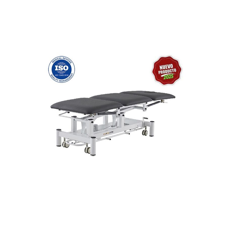 Camilla de Masaje y Fisioterapia eléctrica Premium de 3 secciones con 1 motor y agujero facial Modelo Brom Coinfycare - Color Gris