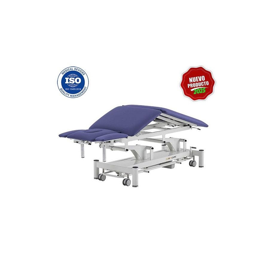 La Camilla Nott de Coinfycare, es una camilla de fisioterapia Premium multifuncional de altas prestaciones de 5 secciones para una amplia gama de tratamientos. La camilla cuenta con estructura metálica y está equipada con reposabrazos en cabezal, ajustables en altura para asegurar la mejor posición cuando el paciente está tumbado en posición ventral. Dispone de 2 motores que regulan el ajuste de la altura de la camilla y la cifosis eléctrica, también incluye portarrollos de serie, además de 4 ruedas grandes retráctiles para facilitar el movimiento. Además, la inclinación del respaldo y del reposapiés se regula mediante pistón de gas, siempre en base la exigencia del trabajo a realizar.