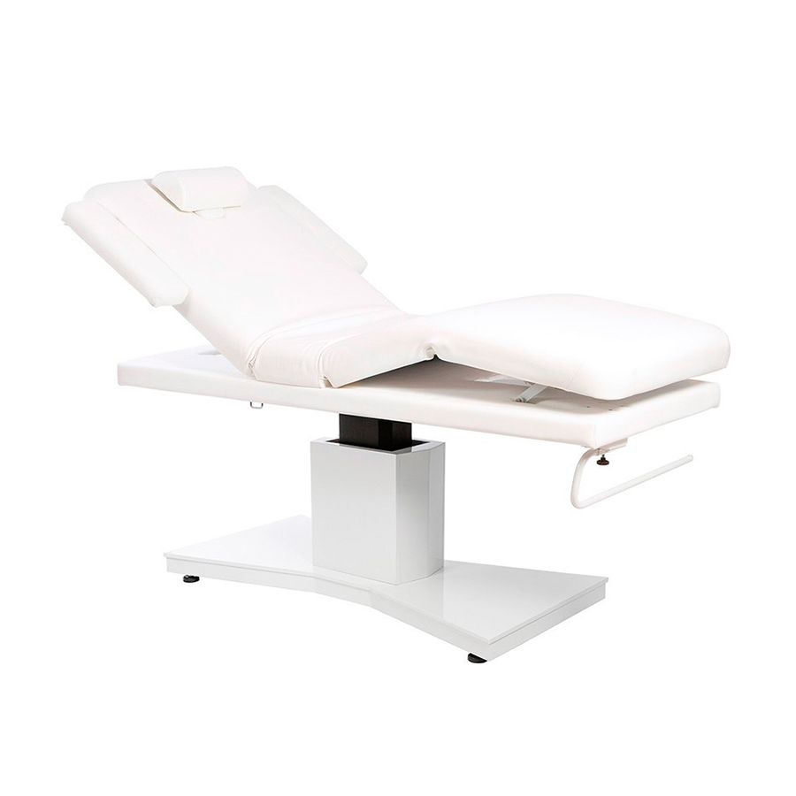 La Camilla Bere es una camilla SPA de altas prestaciones que consta de 3 motores que regulan la altura, la inclinación del respaldo y del módulo central. Además, cuenta con estructura de madera, dispone de reposabrazos y reposacabezas regulables, y cuenta también con un cabecero con agujero facial. La Camilla ha sido diseñada con unos acabados de máxima calidad y cuenta con tapizado blanco en PU de gran calidad y fácil limpieza, así como un acolchado de alta densidad.