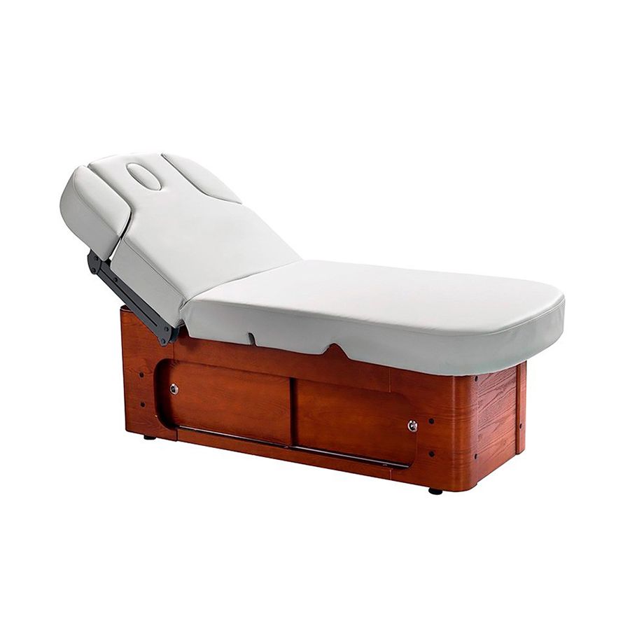 La Camilla Gamm Warm es una camilla SPA de altas prestaciones que consta de 4 motores que regulan la altura, la inclinación del respaldo y del reposapiés. Además, cuenta con estructura de madera, dispone de reposabrazos y reposacabezas regulables, además de un cabecero con agujero facial. La Camilla ha sido diseñada con unos acabados de máxima calidad y cuenta con tapizado blanco en PU de gran calidad y fácil limpieza, así como un acolchado de alta densidad.