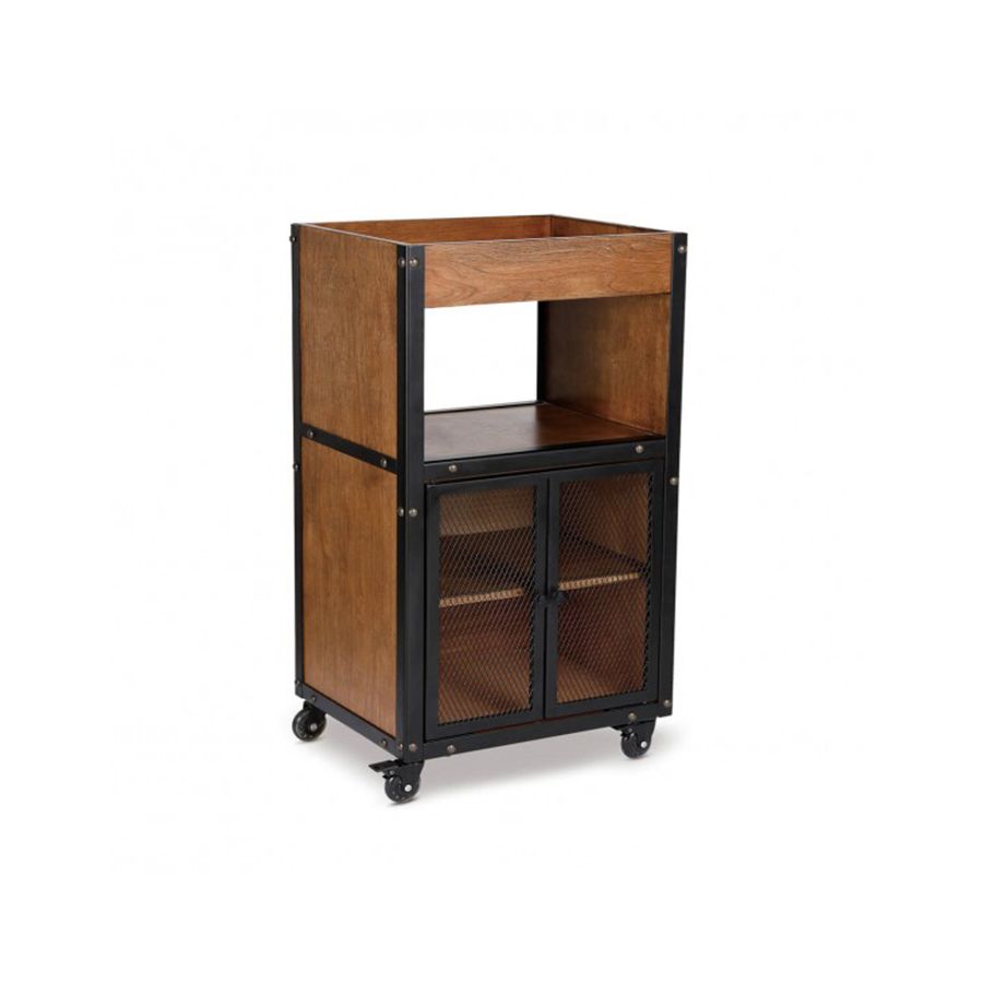 Se trata de un práctico carrito auxiliar con ruedas, que combina materiales nobles para obtener un estilo indomable y acabados a mano para crear bellas y únicas imperfecciones. El mueble esta confeccionado a base de madera contrachapada barnizada de 18 mm, con estructura metálica de 3 y 1.5 mm pintada con pintura en polvo negra mate y malla metálica negra con 2 puertas con pomos negros, que dispone de una práctica bandeja superior, así como varios estantes de almacenamiento para una óptima organización de su espacio de trabajo. Un carrito auxiliar de barbería, que cuenta con diseño sólido y elegante, que ha sido ideado para que combine perfectamente con cualquier tipo de mobiliario, aportando una cálida bienvenida a su negocio.