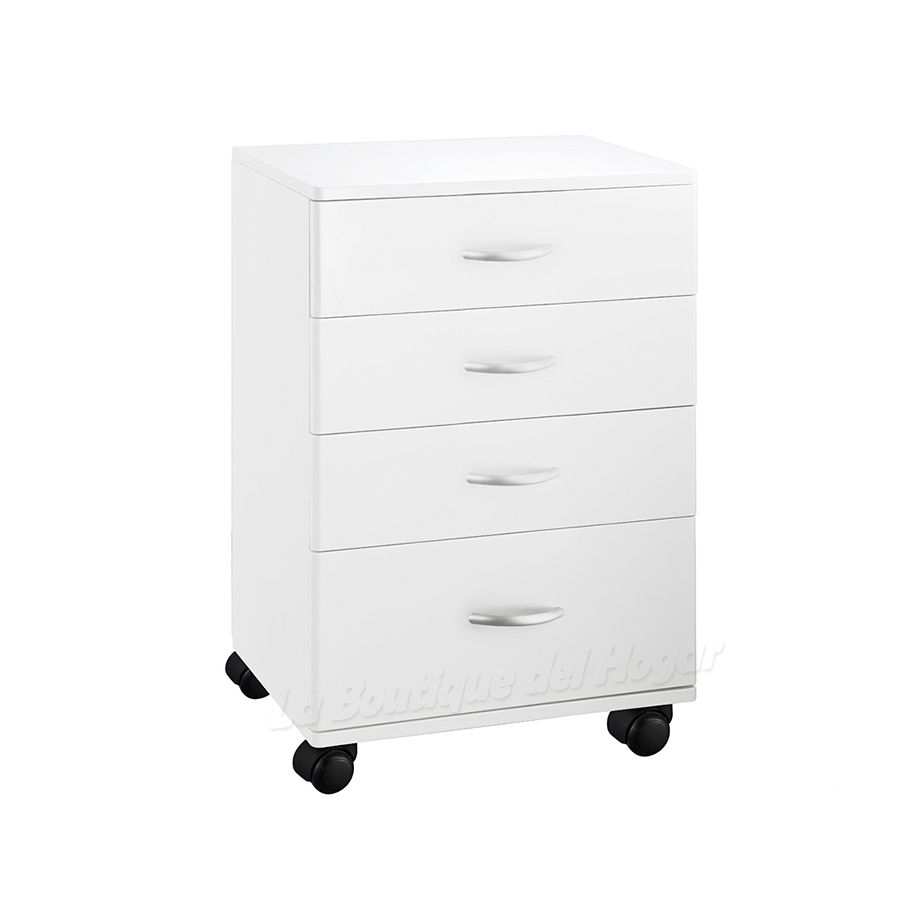 El Carrito de belleza Modelo Handy 1032 dispone de estructura de madera lacada en color blanco y cuenta con un diseño simple, elegante, práctico y cómodo. Además, el carrito de belleza está equipado con 4 prácticos cajones, 3 de ellos de las mismas dimensiones (12,5 cm de altura), y el inferior un poco más alto (18,5 cm), ideales para un perfecto almacenaje de accesorios en centros de belleza. Por otra parte, el Carrito Handy cuenta con una total movilidad gracias a las cuatro ruedas de las que dispone.