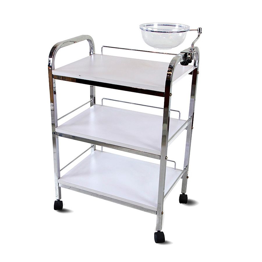 Carrito de estética cromado con 3 estantes y bol extraíble Modelo Epsi