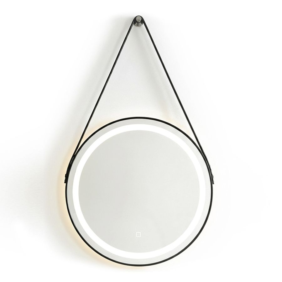 Espejo colgante redondo estilo Moderno con iluminación LED y marco negro Modelo Belt 60x60