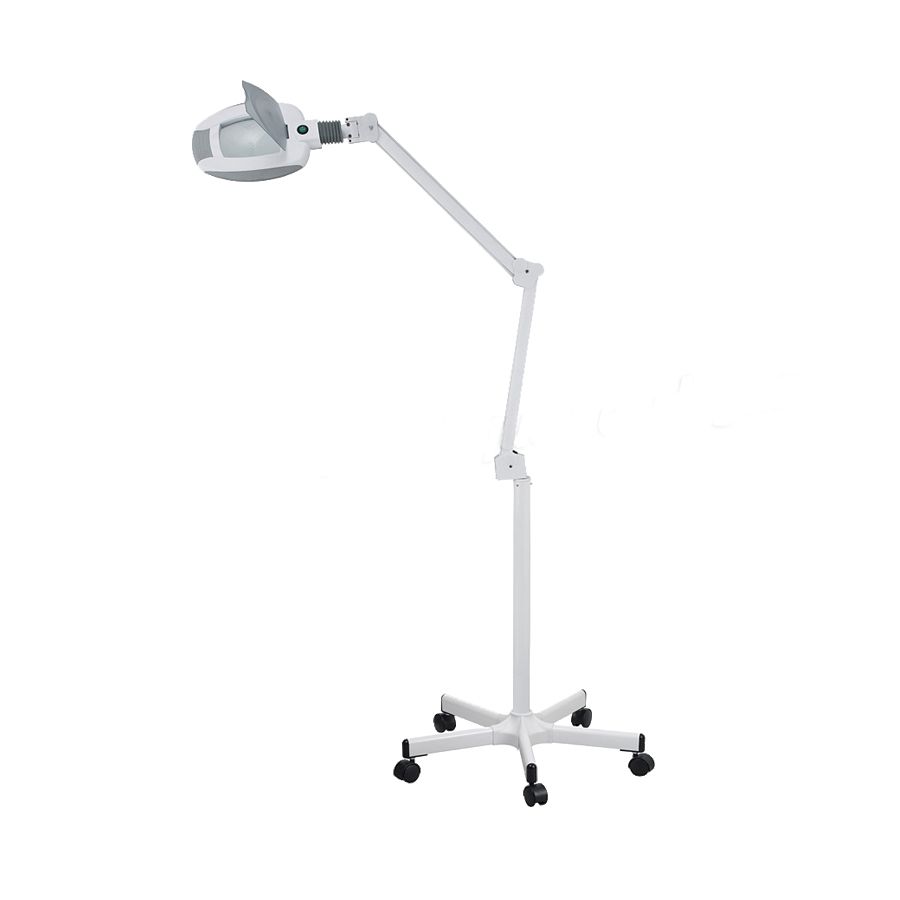 Se trata de una lámpara de LED que dispone de una lupa de 5 aumentos y que emite luz fría, o como es lo mismo, luz de color blanco frío ideal para obtener una luz blanca pura brillante y adecuada para el entorno de trabajo. La intensidad de la luz que es capaz de emitir puede ajustarse en dos posiciones fijas y su brazo articulado facilita el movimiento y la fijación de la lámpara con total seguridad. Además, esta lámpara de LEDs dispone de una base de 5 ruedas que facilita su transporte, y le aporta a la lámpara una alta combinación de movilidad y estabilidad. Algunas de las características generales más importantes de la lámpara LED de 5 aumentos son las siguientes: