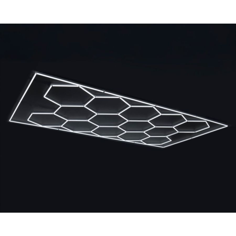 Esta lámpara de techo LED hexagonal con diseño de panal de abejas tiene una amplia gama de usos, y puede decorar tanto el techo de su barbería o peluquería, como también las paredes de oficinas, almacenes, supermercados y otros espacios. Desde sótanos o salas de recreo, hasta cocinas, oficinas, lavanderías, baños, talleres, tiendas, almacenes o garajes, ofreciendo múltiples posibilidades de uso. Además, la Lámpara de techo Bee se puede moldear de diferentes maneras según sus deseos gracias a su montaje mediante uniones en codo, permitiéndole encajar perfectamente en su negocio en base a sus necesidades específicas. Una lámpara led que le ofrecerá una Alta calidad y durabilidad de uso, garantizado el correcto funcionamiento, gracias a su resistente fuente de luz integrada.