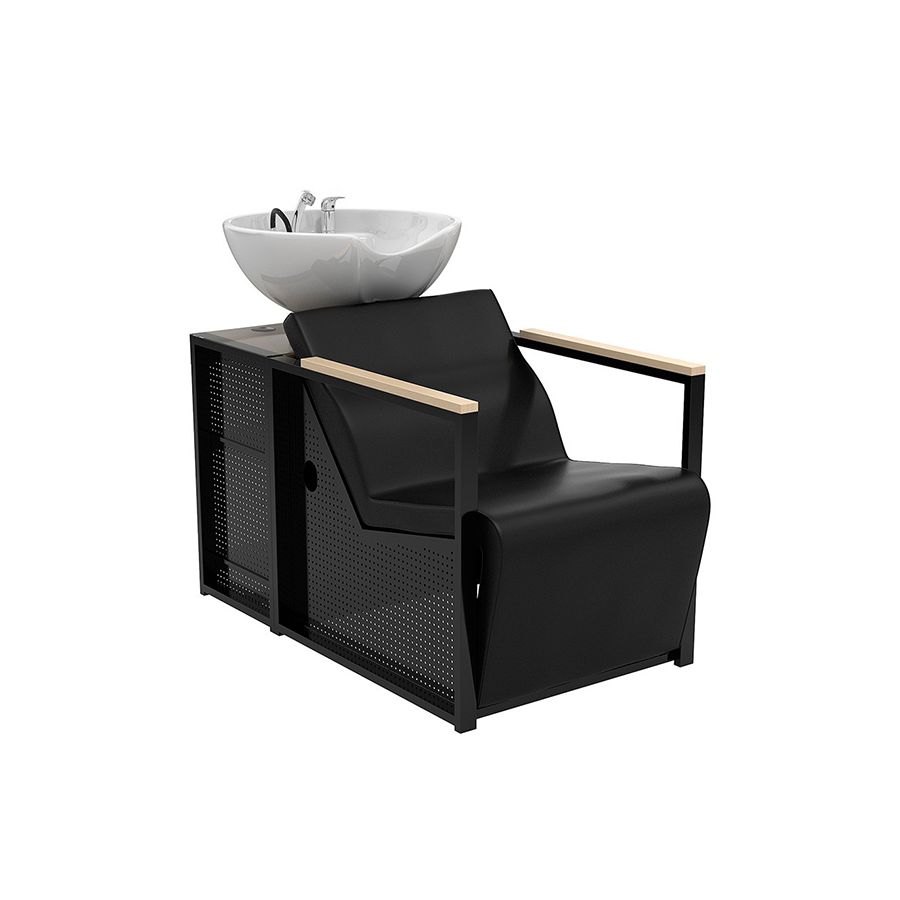 Lavacabezas de madera y metal con pica negra y espacio de almacenaje Modelo Basil B-B Negro