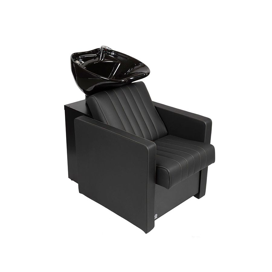 Se trata de un Lavacabezas individual de diseño elegante, que dispone de unos prácticos y elegantes reposabrazos lineales, e incorpora una pica de cerámica basculante en color a elegir (blanco o negro), que se adapta a la nuca aportando una agradable sensación de relax. El sillón del Lavacabezas dispone un elegante diseño de lineas cuadradas, con tapizado en polipiel de PVC color negro retardante al fuego de gran calidad, espuma fabricada en alta densidad para una rápida recuperación a su estado inicial, y gran resistencia, y se adapta perfectamente al cuerpo de la persona, otorgándole un máximo confort. Además, el Lavacabezas dispone de encimera de aluminio, con un cómodo y práctico espacio trasero para almacenar utensilios.