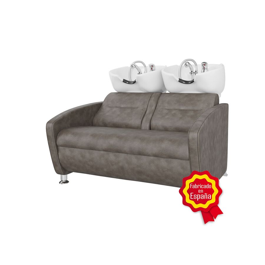 Se trata de un Lavacabezas Doble de diseño elegante, que dispone de unos reposabrazos lineales ligeramente curvados, para una mayor sensación de máximo confort, e incorpora dos picas de cerámica en color blanco que se adaptan a la nuca dando una sensación de relax. Debajo de la pica la base es de acero lacado en pintura inoxidable y con un plástico duro decorativo. El sillón del Lavacabezas dispone un un elegante tapizado en polipiel premium de alta calidad, y se adapta perfectamente al cuerpo de la persona otorgándole un máximo confort.