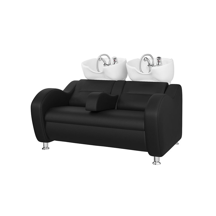 Se trata de un Lavacabezas Doble de diseño elegante con forma oval con 5 patas, que dispone de unos reposabrazos muy anchos, para una mayor sensación de máximo confort, e incorpora dos picas de cerámica en color blanco que se adaptan a la nuca dando una sensación de relax. Debajo de la pica la base es de acero lacado en pintura inoxidable y con un plástico duro decorativo. El sillón del Lavacabezas dispone un un elegante tapizado en polipiel premium de alta calidad, y se adapta perfectamente al cuerpo de la persona otorgándole un máximo confort.