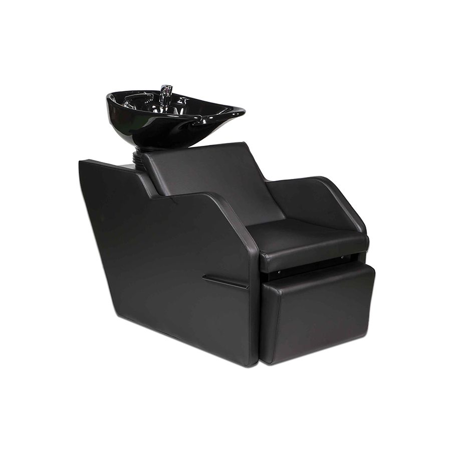 Se trata de un Lavacabezas simple de un sólo seno, de diseño elegante con reposabrazos incorporado, que incorpora una elegante pica de cerámica que se adapta a la nuca, dando una sensación de relax. El sillón del Lavacabezas incorpora una encimera en chapa de aluminio pintada al poliester con protección anti-corrosiva, y dispone de un elegante tapizado en polipiel premium de alta calidad, con un diseño ergonómico que se adapta perfectamente al cuerpo de la persona, otorgándole un máximo confort.