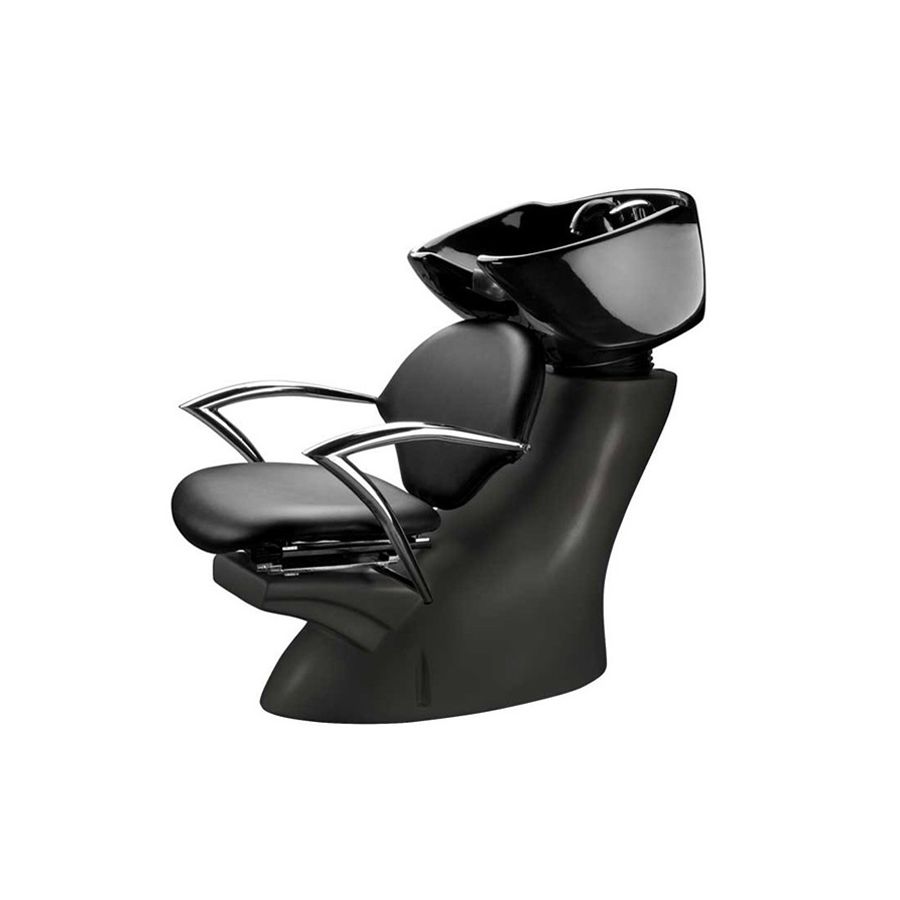 Se trata de un Lavacabezas individual de diseño elegante, con base fabricada en fibra de vidrio negra, que dispone de unos prácticos y elegantes reposabrazos cromados, e incorpora una pica de cerámica color negro, montada sobre mecanismo oscilante, que se adapta a la nuca aportando una agradable sensación de relax. El sillón del Lavacabezas dispone un elegante diseño, con tapizado en polipiel color negro de alta calidad y gran resistencia, con espuma de alta densidad de recuperación rápida, que se adapta perfectamente al cuerpo de la persona, otorgándole un máximo confort. También disponible con pica de cerámica en color blanco y con base en color plateado (Consultar).