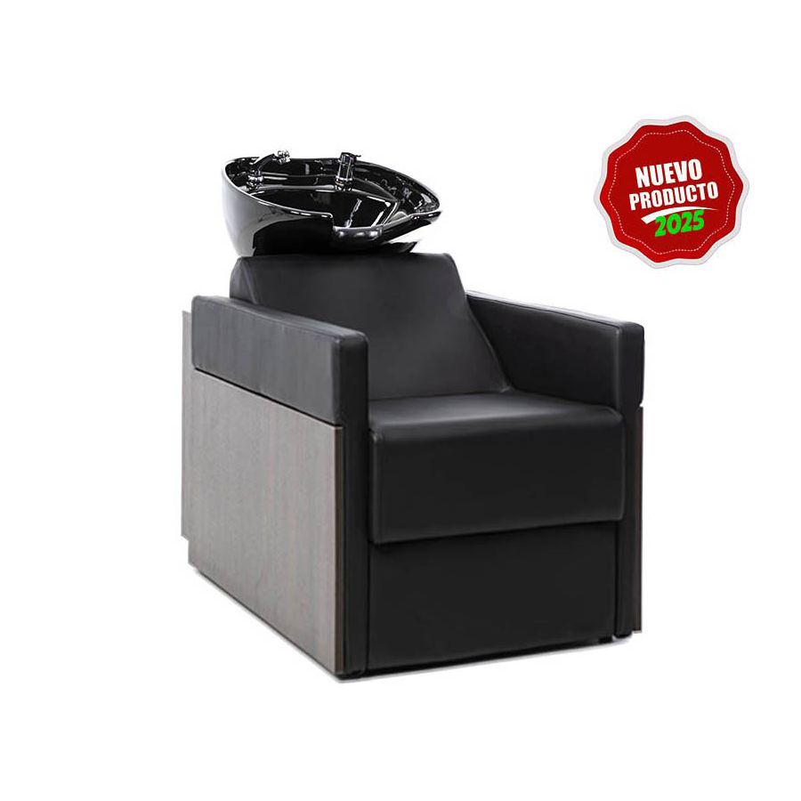 Lavacabezas con pica negra y respaldo ergonómico en madera y polipiel Modelo Rustik - Color Negro