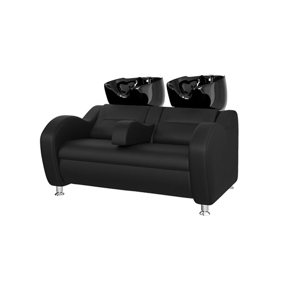 Se trata de un Lavacabezas Doble de diseño elegante con forma oval con 5 patas, que dispone de unos reposabrazos muy anchos, para una mayor sensación de máximo confort, e incorpora dos picas de cerámica en color negro que se adaptan a la nuca dando una sensación de relax. Debajo de la pica la base es de acero lacado en pintura inoxidable y con un plástico duro decorativo. El sillón del Lavacabezas dispone un un elegante tapizado en polipiel premium de alta calidad, y se adapta perfectamente al cuerpo de la persona otorgándole un máximo confort.