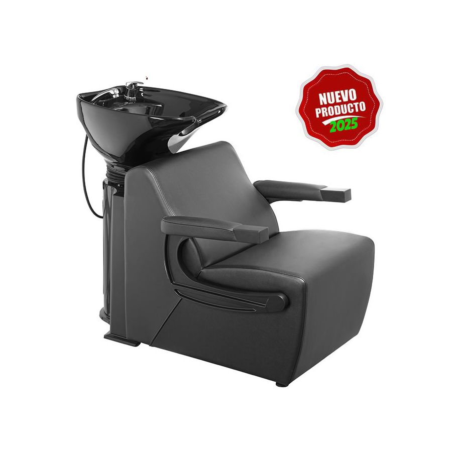 Se trata de un Lavacabezas individual de líneas depuradas y diseño moderno y elegante, que incorpora asiento y respaldo ergonómico, así una pica de cerámica ergonómica y basculante en color negro, que se adapta a la nuca aportando una agradable sensación de relax. El sillón del Lavacabezas dispone un elegante diseño, con tapizado en polipiel de PVC retardante al fuego color negro de gran calidad, espuma fabricada en alta densidad para una rápida recuperación a su estado inicial, y gran resistencia, y se adapta perfectamente al cuerpo de la persona, otorgándole un máximo confort.