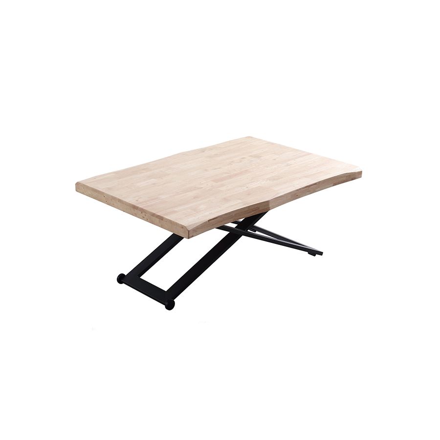 Mesa de centro elevable negra con patas metálicas y tablero con forma Roble Nordish Modelo Zoe 120x80cm