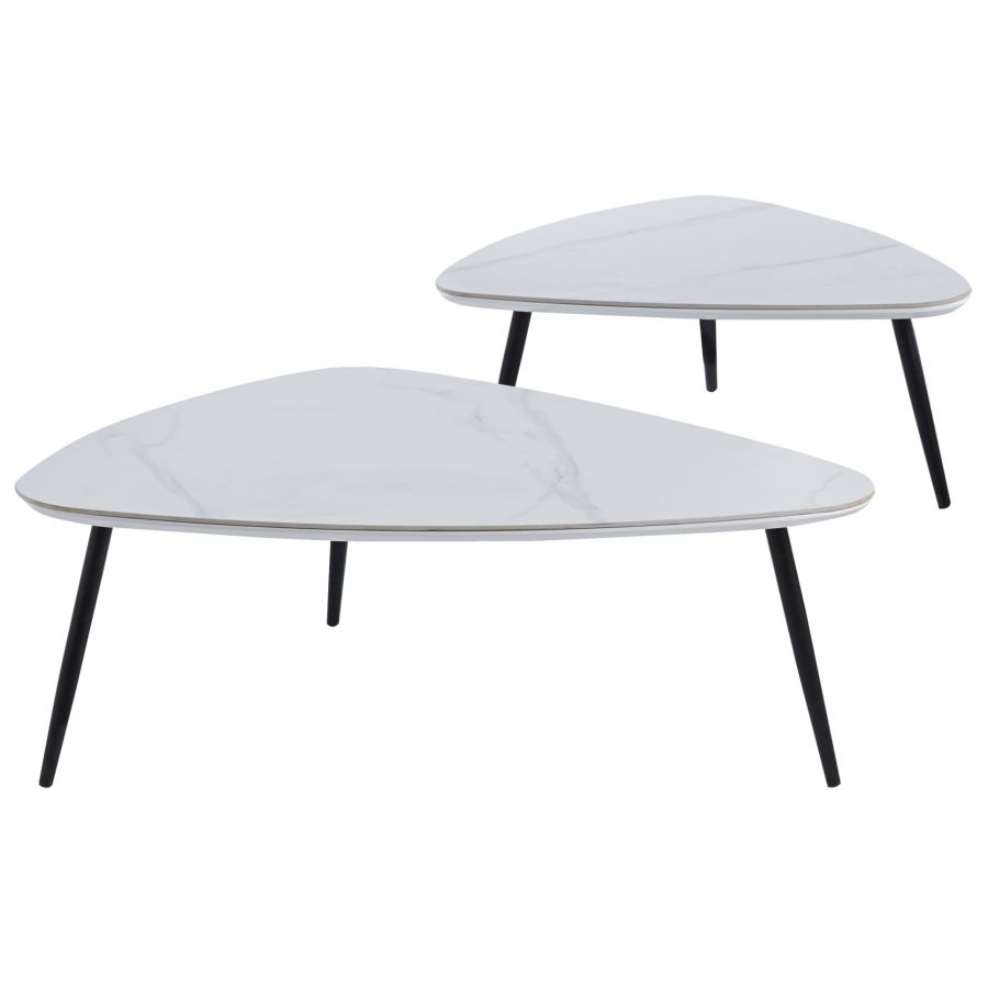 La Mesa Centro Nido Ibiza Ceramic Blanco / Negro es la solución ideal para quienes buscan funcionalidad y estilo en un solo mueble. Su formato nido incluye dos mesas de diferentes tamaños que se pueden usar juntas o por separado, ofreciendo flexibilidad para cada ocasión.