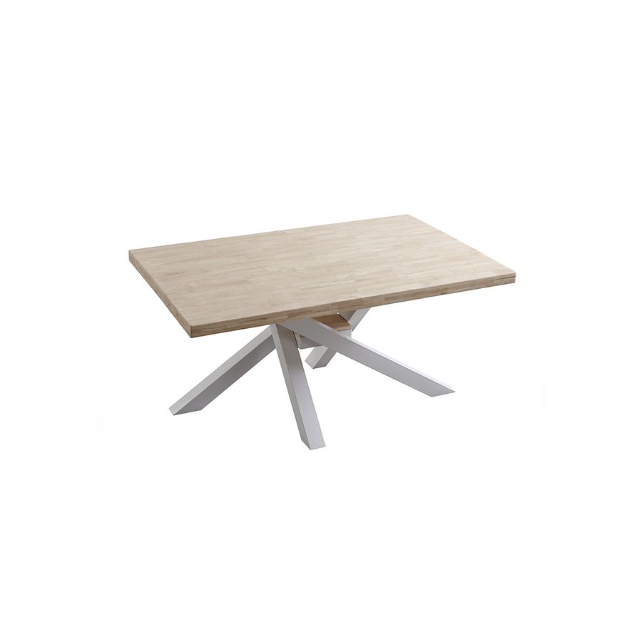Mesa de comedor fija blanca con patas metálicas y tablero de Roble Nordish Xena 160