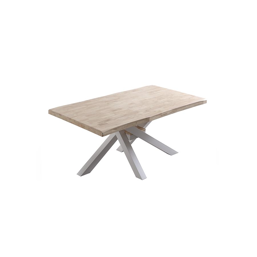 Las mesas para comedor que le facilita La Boutique del Hogar son un extraordinario ejemplo del concepto que supone el utilizar materiales de calidad para la elaboración de productos para el hogar adaptados a cada uso particular. Se trata de una Mesa de comedor fija de estilo moderno, fabricada con materiales de primera calidad, cuya estructura se compone de unas llamativas y elegantes patas metálicas en forma de X en color blanco, sobre las que descansa un tablero de madera maciza de Roble Nordish con 54mm de grosor, que muestra el veteado natural de la madera, aportando la calidez y naturalidad del estilo Escandinavo. De líneas depuradas y estilizadas, se trata de una mesa muy funcional con un elegante diseño que le permitirá encajar en cualquier tipo de ambiente nórdico, rústico o industrial, y que otorgará a su casa un estilo limpio y definido.