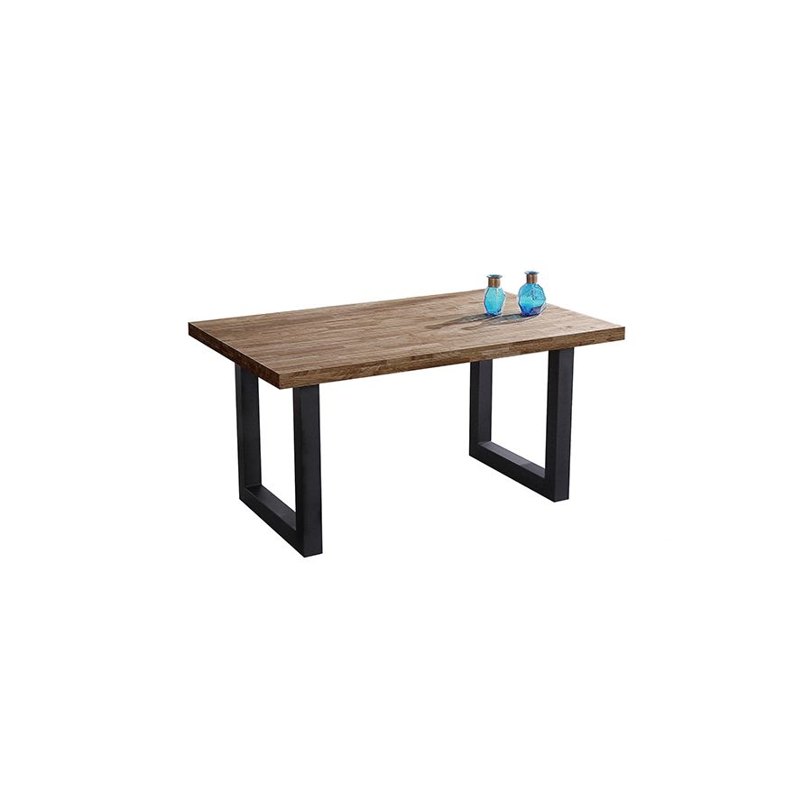 Mesa de comedor fija negra con patas metálicas y tablero de Roble American Modelo Loft 160x100