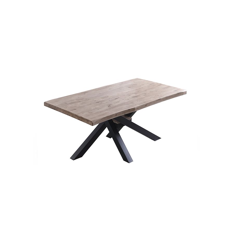 Las mesas para comedor que le facilita La Boutique del Hogar son un extraordinario ejemplo del concepto que supone el utilizar materiales de calidad para la elaboración de productos para el hogar adaptados a cada uso particular. Se trata de una Mesa de comedor fija de estilo moderno, fabricada con materiales de primera calidad, cuya estructura se compone de unas llamativas y elegantes patas metálicas en forma de X en color negro, sobre las que descansa un tablero de madera maciza de Roble Honey con 54mm de grosor, que muestra el veteado natural de la madera, aportando la calidez y naturalidad del estilo Escandinavo. De líneas depuradas y estilizadas, se trata de una mesa muy funcional con un elegante diseño que le permitirá encajar en cualquier tipo de ambiente nórdico, rústico o industrial, y que otorgará a su casa un estilo limpio y definido.