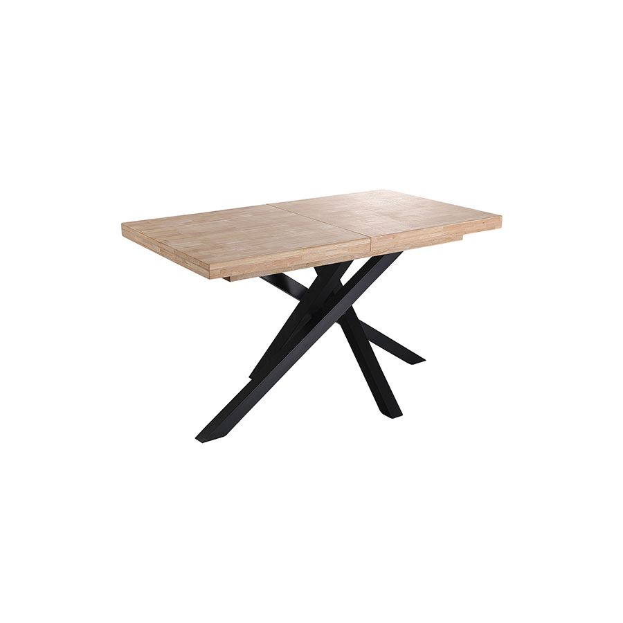 Mesa de comedor extensible negra con patas metálicas y tablero de Roble Nordish Modelo Xena 140x90