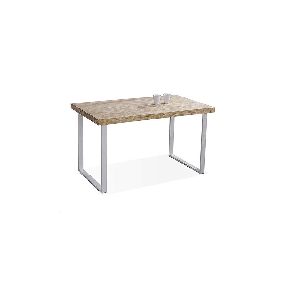 Las mesas para comedor que le facilita La Boutique del Hogar son un extraordinario ejemplo del concepto que supone el utilizar materiales de calidad para la elaboración de productos para el hogar adaptados a cada uso particular. Se trata de una Mesa de comedor fija de estilo moderno, cuya estructura se compone de unas elegantes patas metálicas en forma de U color blanco, sobre las que descansa un grueso Tablero de madera color Roble Salvaje de 55 mm de grosor. De líneas depuradas y estilizadas, se trata de una mesa muy funcional con un elegante diseño que le permitirá encajar en cualquier tipo de ambiente y que otorgará a su casa un estilo limpio y definido. Una mesa que también podrá lucir en su cocina si le apetece.