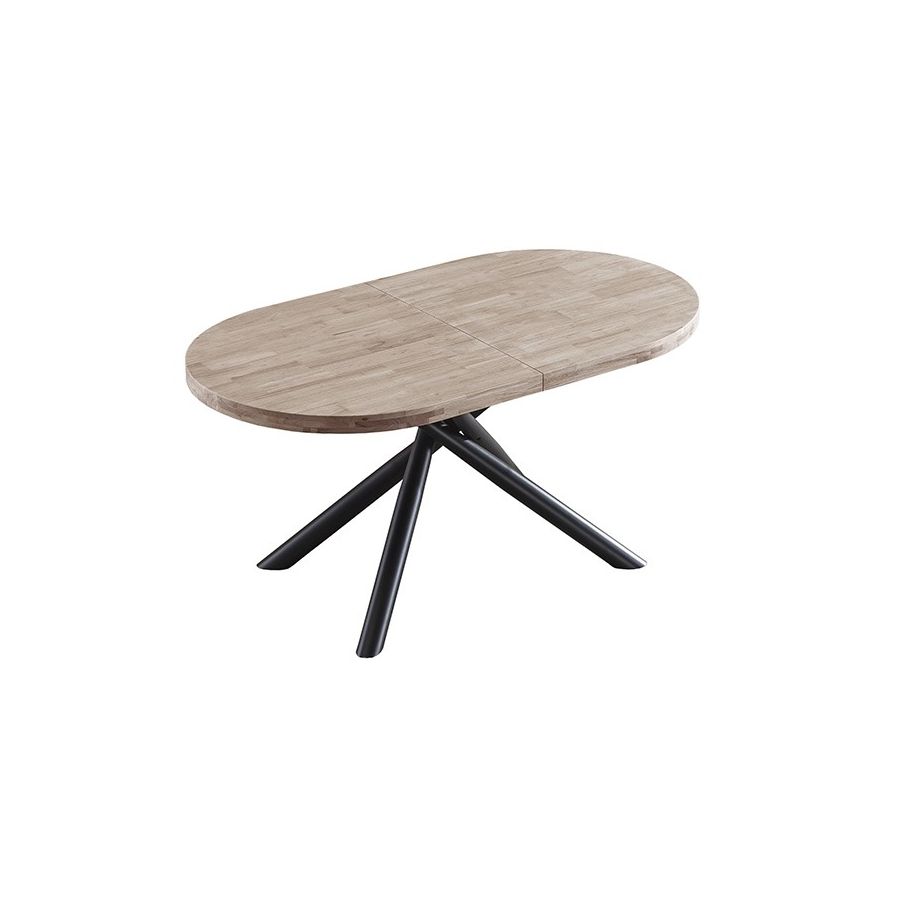 Mesa de comedor Oval extensible negra con patas metálicas y tablero de Roble Honey Modelo Senda 160x90