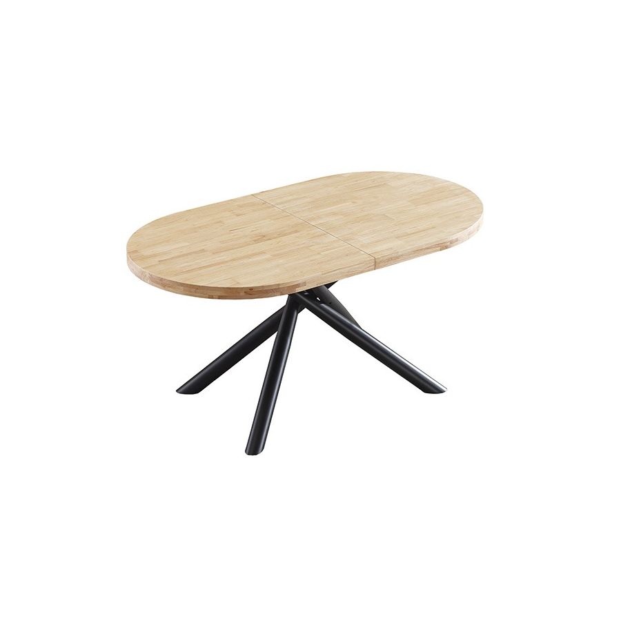 Mesa de comedor Oval extensible negra con patas metálicas y tablero de Roble Nordish Modelo Senda 160x90