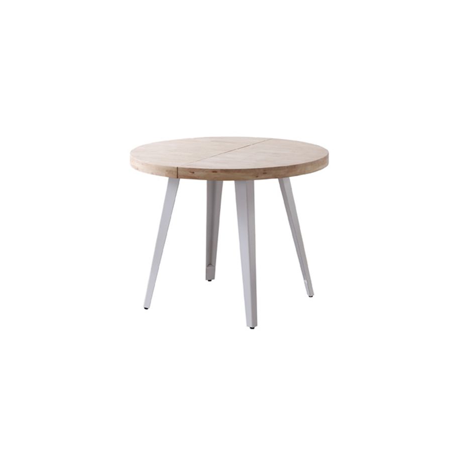 Mesa de comedor Redonda extensible blanca con patas metálicas y tablero de Roble Nordish Modelo Berg 120