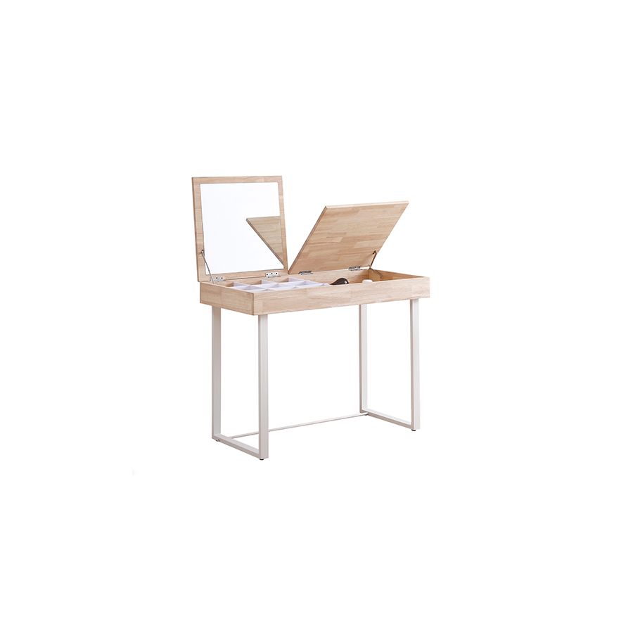 Mesa de Estudio Tocador con Espejo, patas metálicas blancas y tablero de Roble Nordish Modelo Pretty