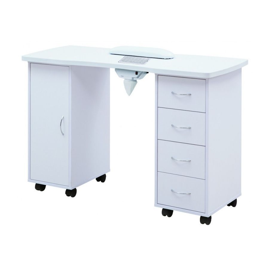 La Boutique del Hogar pone ahora a su disposición esta fantástica Mesa de manicura con aspirador, bolsa y cojín reposamanos Modelo LBH-128 cuya funcionalidad, comodidad de uso y acabados de máxima calidad, la convierten en una de las mesas de manicura con mejor relación calidad-precio disponibles actualmente en el mercado. Se trata de una elegante mesa de manicura de madera de doble columna con puertas, cajones y baldas, lacada en color blanco con altas prestaciones, equipada con doble columna con ruedas incluidas, y que incorpora prácticas funcionalidades como aspirador, bolsa y cojín reposamanos.
