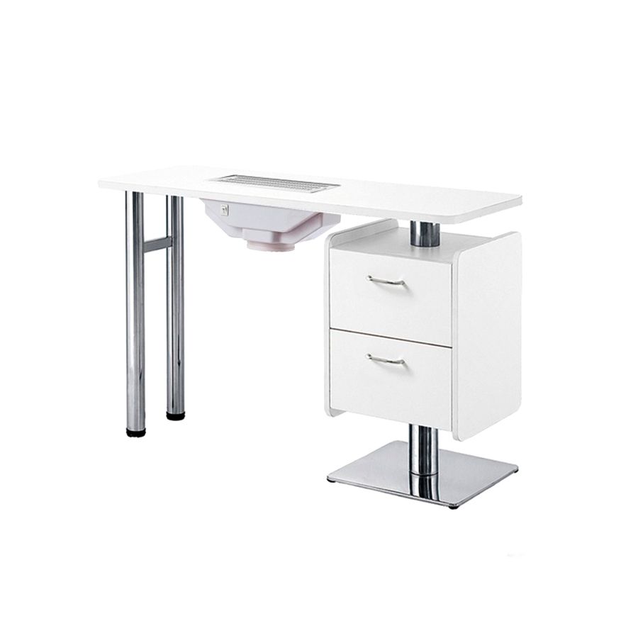 Además, la Mesa de manicura Hale ha sido desarrollada con un diseño compacto y elegante, y está equipada con pies cromados así como una columna de almacenaje con dos prácticos cajones.
