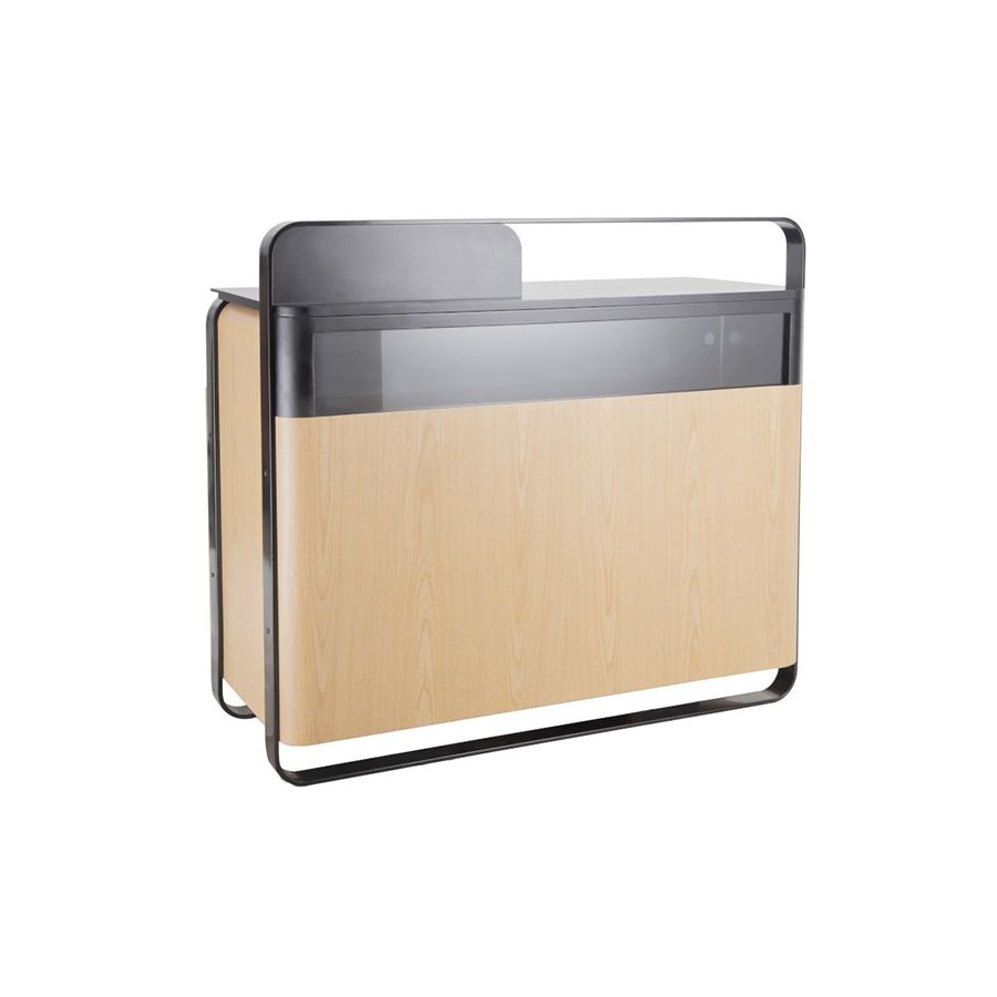 Se trata de un práctico y seductor Mueble de recepción que destaca por sus finas líneas y que dispone de una elegante vitrina con luces LED para poder exhibir productos especiales, así como una gran área de almacenamiento interno donde podrá guardar productos y otros artículos necesarios para el funcionamiento de la recepción. Además, el Mueble de recepción Erin cuenta con 2 cajones con cerradura para poder mantener seguros sus objetos de valor, un compartimento adicional con doble puerta y una pared frontal protectora, que oculta el área de almacenaje interno de las miradas de los mas curiosos. Un Mueble de recepción que será por tanto el equilibrio perfecto entre la sensibilidad y practicidad, y que ha sido ideado para que combine perfectamente con cualquier tipo de mobiliario, para dar una cálida bienvenida a su negocio.