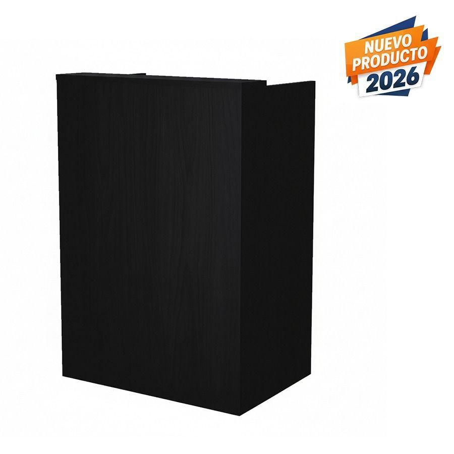 Se trata de un práctico Mueble de recepción de línea minimalista y con completos espacios de almacenaje, que cuenta con acabados en melamina de madera en tono negro, y que resultará perfecto para renovar tu negocio y conseguir que los clientes no quieran marcharse. Este mueble ha sido fabricado en tablero de aglomerado de alta densidad libre de formaldehidos, y cuenta con diseño compacto, sólido y elegante, recubierto con melamina acabado madera y canteado en PVC.