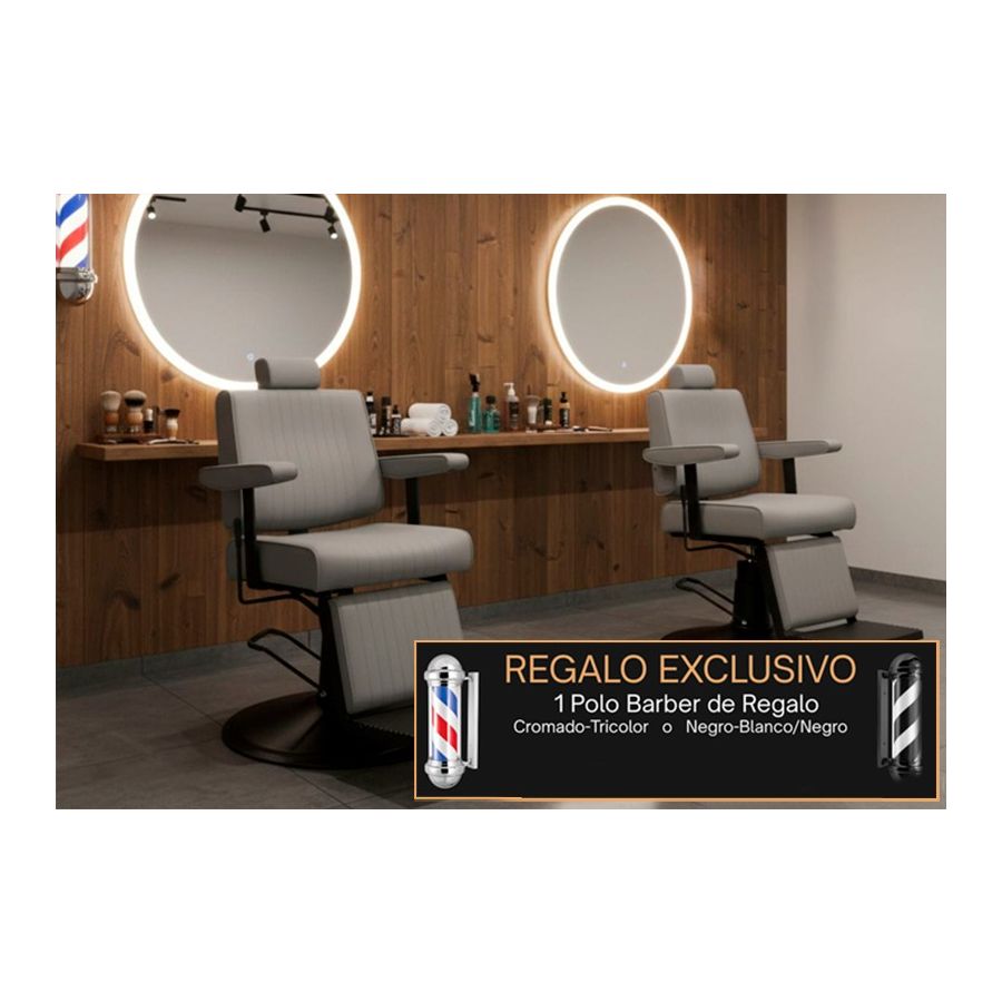 Pack - 2 Sillones Barbero Modelo Cut Black Gris + Poste giratorio para Barbería a elegir de REGALO