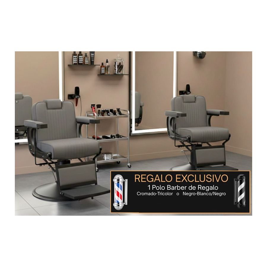 Pack - 2 Sillones Barbero Vintage Modelo Mamba Gris + Poste giratorio para Barbería a elegir de REGALO