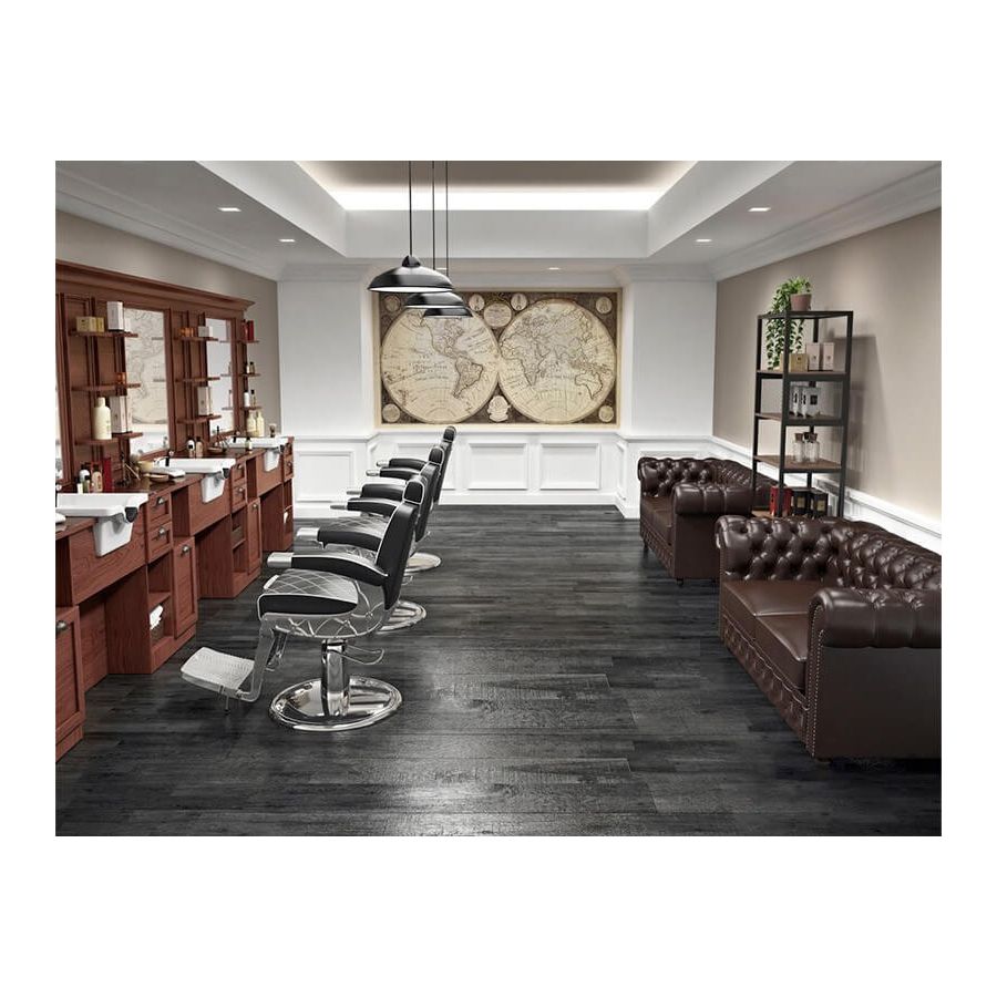 Este Pack incluye 1, 2 o 3 Sillones de Barbero Reclinables y Giratorios Modelo Hugo. Se trata de un elegante Sillón hidráulico reclinable, giratorio y regulable en altura, que dispone de un diseño ergonómico y elegante, que también incorpora reposabrazos, así como reposapies inclinable de aluminio, y reposacabezas ajustable, además de un tapizado en PVC retardante al fuego de alta calidad en color negro con acolchado de gran confort y detalles en relieve..